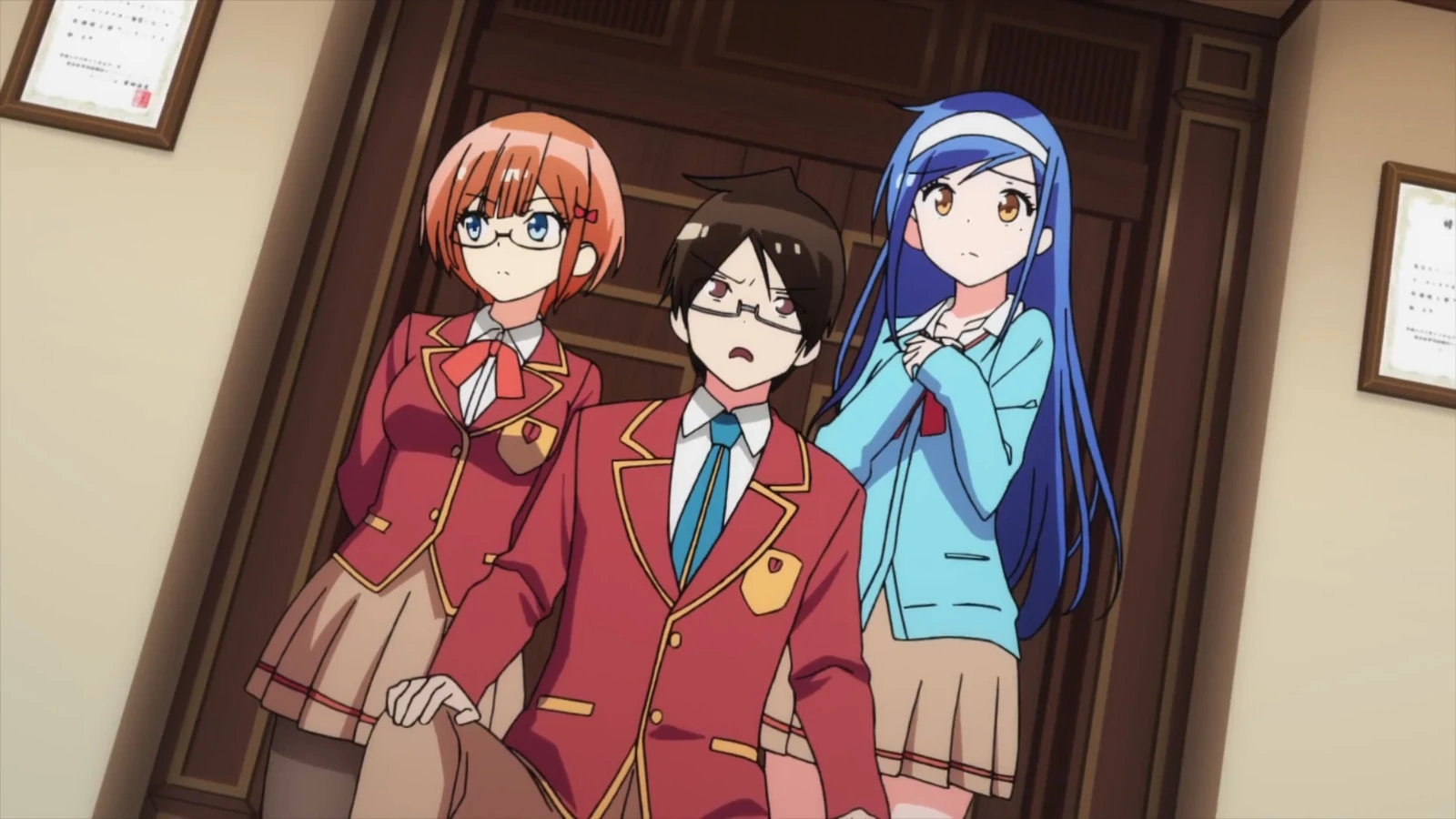 In the Headmaster's office, Nariyuki wonders to himself why he has been called there as the Headmaster looks through his school record. The Headmaster then tells Nariyuki that he will gladly give him the VIP recommendation, which initially makes Nariyuki happy, but the Headmaster mentions that he will give it to him under one condition. Just then, a knock on the office door is heard and the Headmaster calls forth who it is: Rizu and Fumino. Nariyuki recognizes the two as the academy's two geniuses in science and literature, respectively. The Headmaster informs Nariyuki that he will be given the special VIP recommendation under the condition that he serve as both girls' tutor so they can get into a university of their choosing.