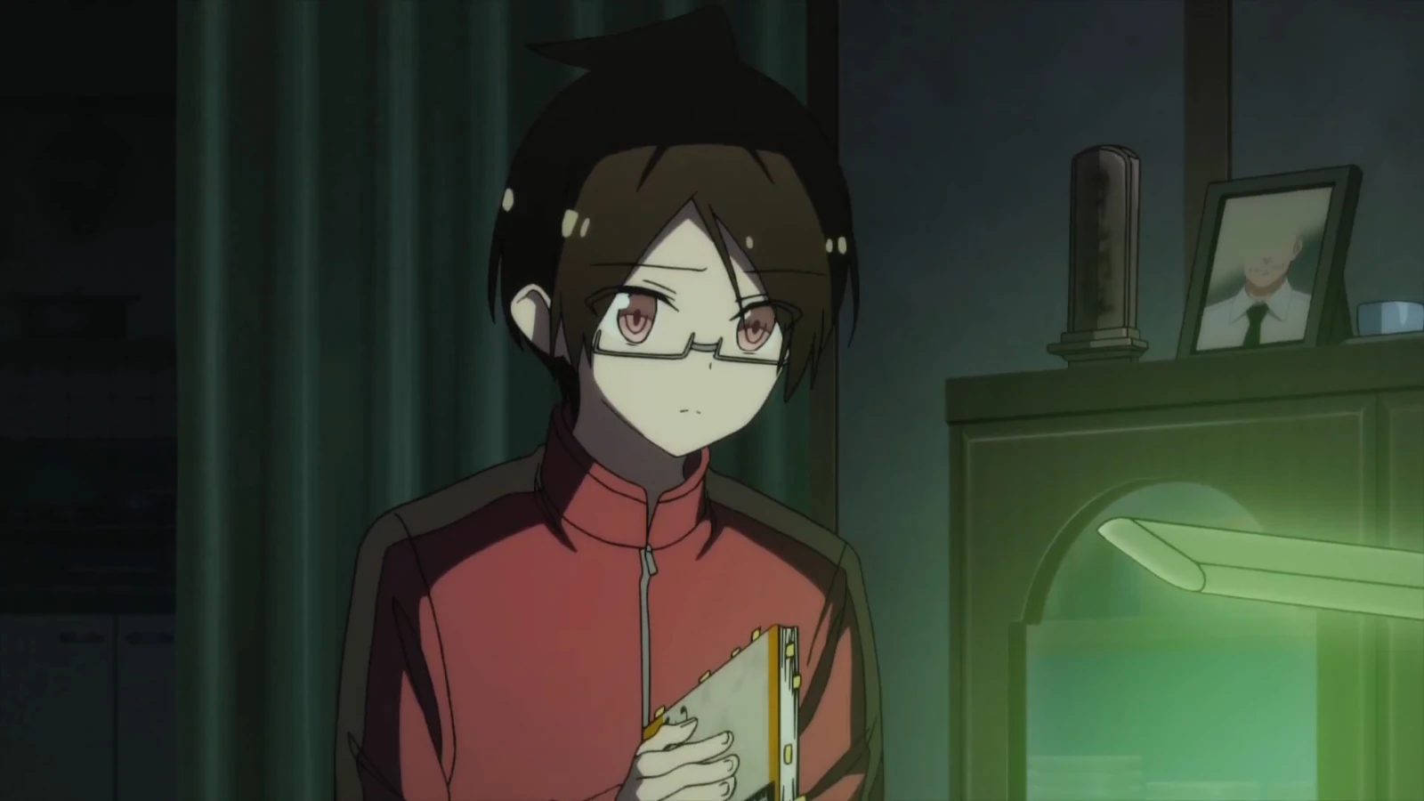 - Nariyuki eating dinner with his family is adapted out.