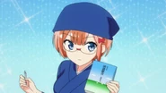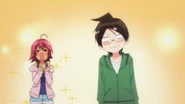 Once she is done, she asks Nariyuki to try it after he questions her cooking. Nariyuki is amazed by the dish and commends Uruka for being a good cook while pointing out how she looks like a newlywed wife, to Uruka's total embarrassment. Upstairs in Fumino's bedroom, Nariyuki's sees her waking up and asks how she is feeling. Fumino replies that her fever went down and thanks both him and Uruka, who has fallen asleep, for taking care of her. She then notices Nariyuki holding her textbook. He answers that he saw it open and was curious about it, but came to see that Fumino has a good handle on her exam tomorrow. Fumino then mentions how Nariyuki had taught her that things like numerical formulas are thought up by people and they have reasons for why they became as such as she can relate to them. She adds that hearing that made her feel not so hopeless. Standing up from her bed, she tells Nariyuki that she wishes for him to continue being her tutor as she strongly feels that her dream is within her reach with him. Nariyuki, touched by her words, returns the sentiment but then faces the other direction as he mentions that he can see through Fumino's pajamas, which immediately embarrasses her. The day after the exams, Nariyuki presents the Headmaster the results of Rizu and Fumino's exams in Modern Japanese and Math, respectively. Impressed that the two got a higher than average score, he commends Nariyuki on a job well done. Afterward, Nariyuki celebrates their success.