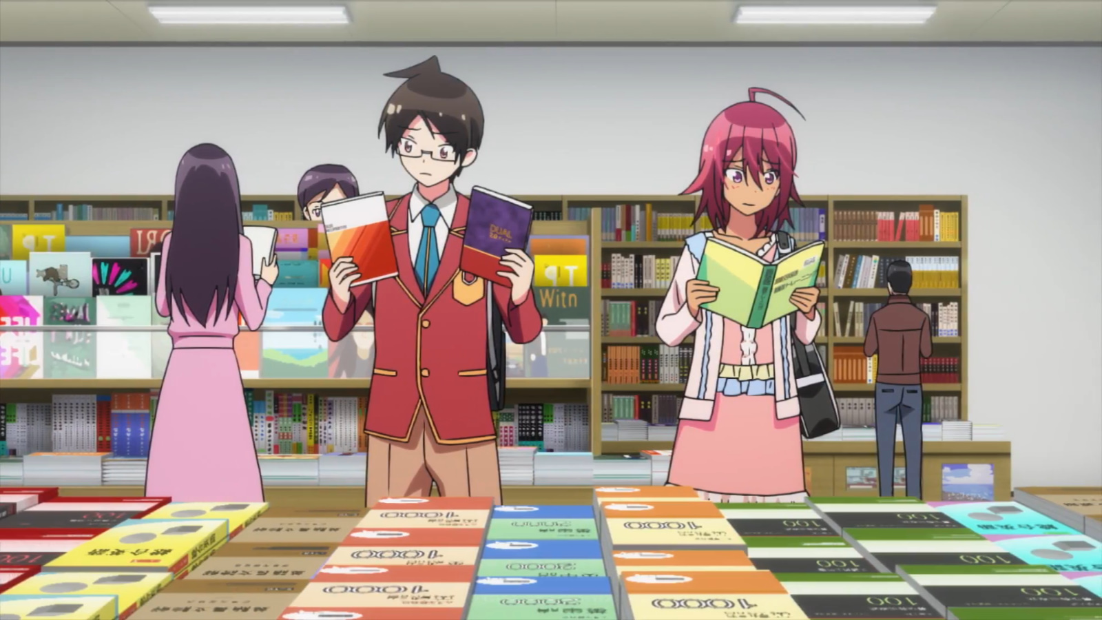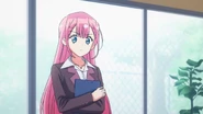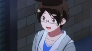 Inside the bookstore, as Nariyuki looks around for potential reference books, Uruka wonders to herself how she ended up in this situation but is curious to know what Nariyuki thinks of her new look. Looking around, she spots a poster of a princess being carried and remembers when she once wanted to be a princess herself, but her friends told her that it didn't suit her at all. Uruka then wonders when she started to give up on girly things like that. Just then, Nariyuki shows her a reference book for English words and idioms that she can use, but she is too caught up over him being close to her. When she overhears a child call her and Nariyuki a couple, she wonders if she and Nariyuki look like an actual couple, wishing that she and Nariyuki can stay like this and never be apart, but then notices that her thought process is unusual, with her thinking that it might be her new look making her this way. However, her train of thought is broken when Nariyuki asks if she is listening to him, asking her if there is something wrong, which Uruka answers as nothing.