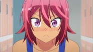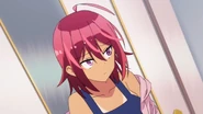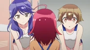 Sometime later at school, Chinami Umihara and Ayuko Kawase are disappointed to learn that Uruka has still not confessed her feelings to Nariyuki. Uruka ignores her friends' inquiry about the matter. Ayuko then invites her to hang out with them after swimming practice. At a women's clothing store, Chinami and Ayuko pick out clothing for Uruka to wear, but when she tries it on, she refuses to come out of the dressing room, telling them that the clothes don't match her. Ayuko tells her to stop being bashful and tells her to come out, opening the dressing room. Seeing Uruka in the clothes they picked out, Ayuko compliments that she looks fantastic in it. She then tells her to go after Nariyuki while wearing her new clothes, with Chinami holding her uniform so that she doesn't back out and the two leave. Afterward, Uruka is walking by herself while feeling self-conscious about her new clothes and wishing that she doesn't run into Nariyuki, only for him to spot her, shocking her. He asks what she is doing by herself and Uruka, panicking, points at a book store and makes up that she was going to get some reference books. Hearing this, Nariyuki invites himself to go with her, to her dismay.